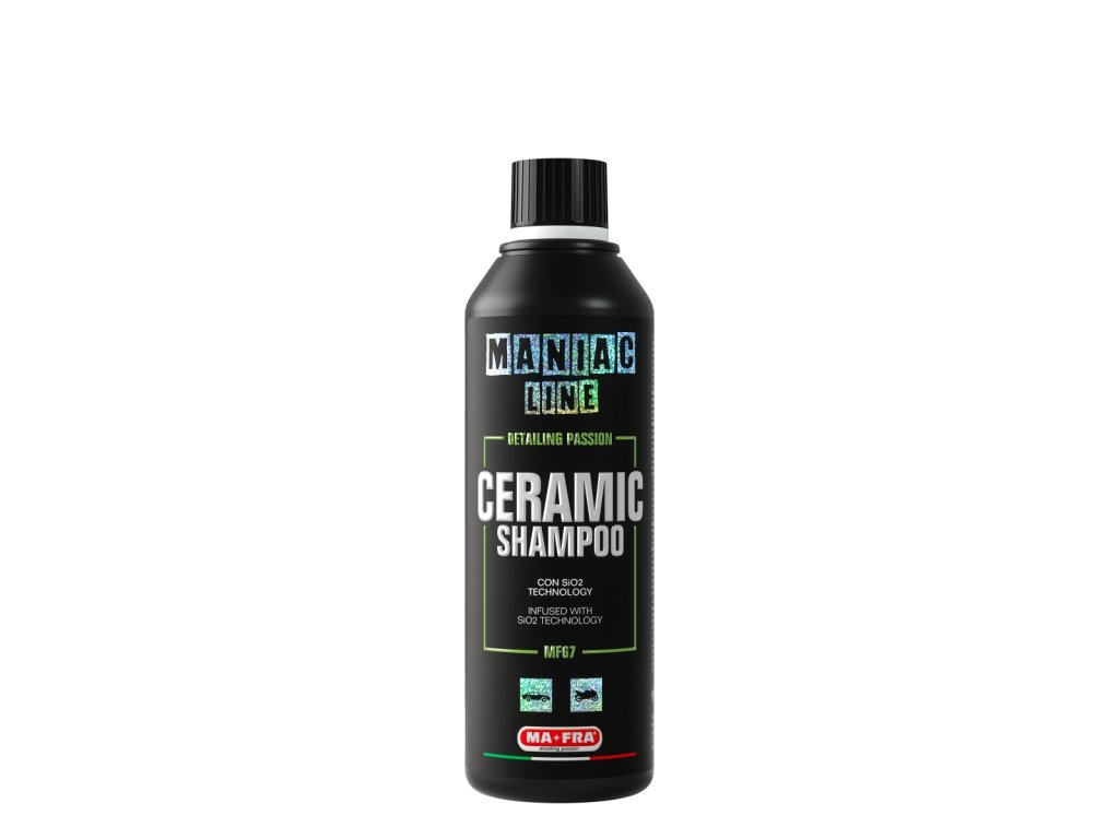 MANIAC Keramický šampon je špičkový produkt, který čistí a zároveň poskytuje ochrannou keramickou vrstvu na laku díky obsaženým SiO2 polymerům. Po aplikaci se na povrchu vozidla vytvoří odolný keramický sealant, který zajišťuje hluboký lesk a intenzivní hydrofobní efekt. Díky tomu se kapky vody i nečistoty snadno odpuzují, což usnadňuje následné čištění a zajišťuje dlouhodobou ochranu.